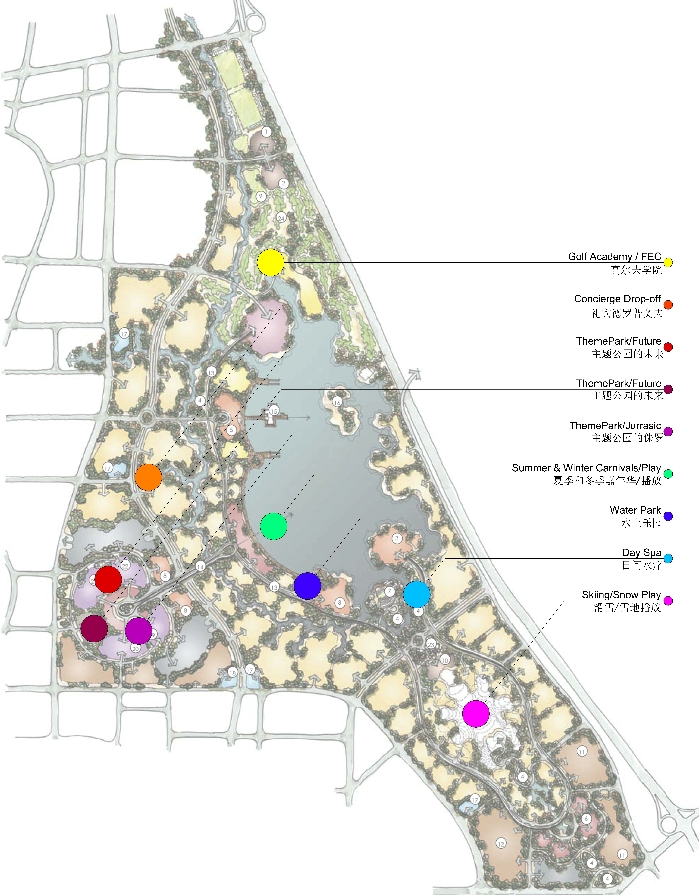 EDG was contracted to create a concept design and vision plan for a "Jurassic Park" themed park in Daqing City as part of 150 hectares mixed use entertainment district. Featuring Jurassic Theme Park, the area will also include two additional theme parks, entertainment retail, two five star hotels, an artificial ski slope, water palace, water activities on a 500 hectares lake, residential area, and office and commercial space. Reflecting the area's history and culture, guests enter the Jurassic Theme Park through Explorers' Village and arrive at a massive dig site with an active volcano. From there the adventures continue as guests explore the five lands: Fossil Land, Living with Dinosaurs, Ice Age, Dino Sky, and Primordial Seas. EDG was responsible for creating a master plan for the entire entertainment district as well as a concept design, narratives and story lines, and site plans for the Jurassic Theme Park. The plan is for the project to increase tourism and establish Daqing as a destination of international stature.