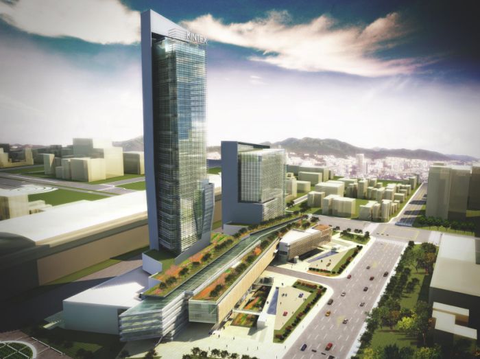 The Kintex Hotel and Entertainment Center is designed to be located adjacent to the new 50,000 sq m Kintex Convention Center to create a synergistic catalyst for future local development. EDG leadership developed and packaged the winning development proposal, master plan, and strategy for a hotel and entertainment district, including a 600-room convention hotel, a 200-room boutique hotel, and 30,000 sq m of dining and entertainment uses. The hotel tower and retail entertainment wall are designed as a giant media platform that, along with foreground events plazas, allows for an interactive connection with the activities of the convention center. The project also creates a destination district for Goyang City providing hotels with a mix of daytime and nighttime entertainment and dining uses.