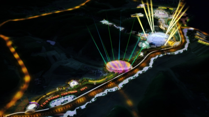 Zhongnan Cartoon City, a mixed use tourism and entertainment destination, is the centerpiece of a regional tourism strategy to expand and diversify the Qipan Mountain International Scenic Tourism district.