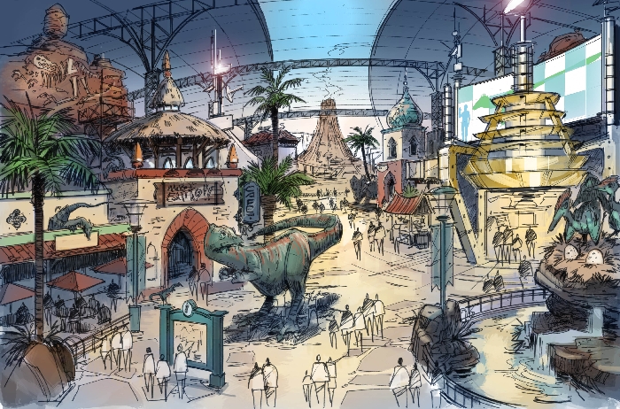EDG was contracted to create a concept design and vision plan for a "Jurassic Park" themed park in Daqing City as part of 150 hectares mixed use entertainment district. Featuring Jurassic Theme Park, the area will also include two additional theme parks, entertainment retail, two five star hotels, an artificial ski slope, water palace, water activities on a 500 hectares lake, residential area, and office and commercial space. Reflecting the area's history and culture, guests enter the Jurassic Theme Park through Explorers' Village and arrive at a massive dig site with an active volcano. From there the adventures continue as guests explore the five lands: Fossil Land, Living with Dinosaurs, Ice Age, Dino Sky, and Primordial Seas. EDG was responsible for creating a master plan for the entire entertainment district as well as a concept design, narratives and story lines, and site plans for the Jurassic Theme Park. The plan is for the project to increase tourism and establish Daqing as a destination of international stature.